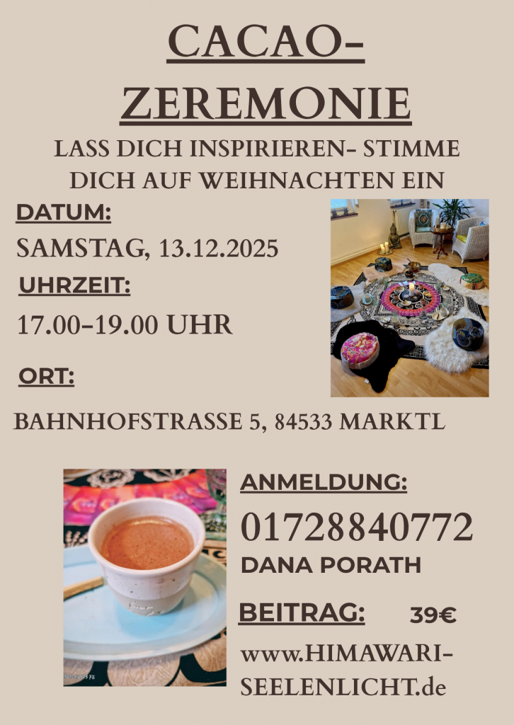 Unter der Rubrik Veranstaltungen findest Du genauere Informationen. Ich freue mich auf Dich und Dein Interesse.