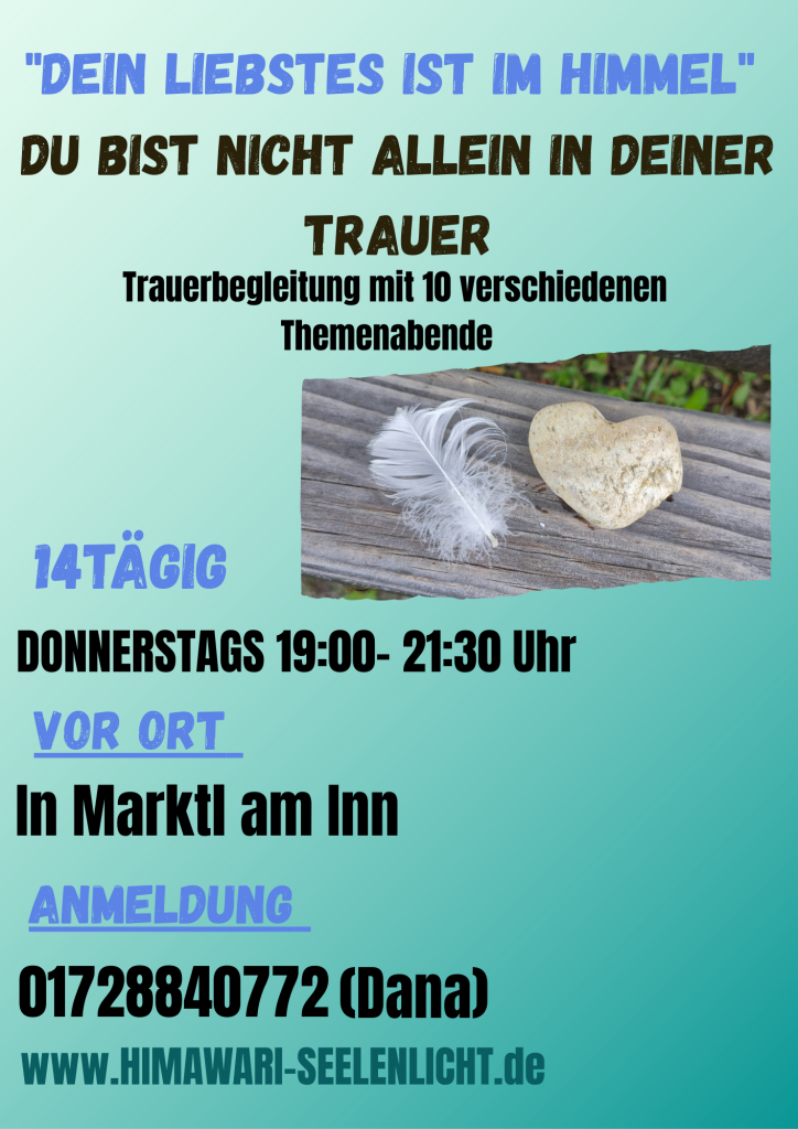 - „Dein Liebstes ist im Himmel“ Treffpunkt für Menschen in Trauer – Terminbeginn 12.2.2026, jeweils 10 Einheiten, bitte um Voranmeldung